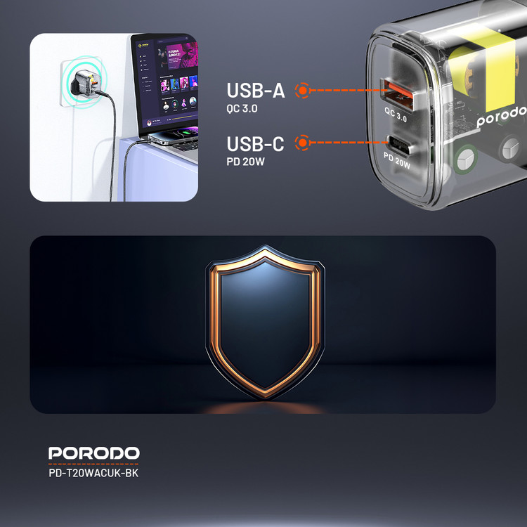 شارژر دیواری 20W پرودو مدل Dual Output Transparent یک ابزار جانبی پیشرفته و بسیار کاربردی است که با طراحی شفاف و پلاگین استاندارد بریتانیایی تولید شده است. این شارژر به شما امکان میدهد تا دستگاههای خود را با کارایی بیشتر و ایمنی بالاتر شارژ کنید. با توجه به پشتیبانی از دو پورت خروجی USB-C PD و USB-A QC، این شارژر توانایی ارائه توان خروجی 20 وات را دارد و میتواند بهصورت همزمان دو دستگاه را شارژ کند. از ویژگیهای برجسته این محصول میتوان به حفاظت در برابر گرمای بیش از حد اشاره کرد که از آسیب رسیدن به دستگاههای شما جلوگیری میکند. طراحی شفاف این شارژر، علاوه بر زیبایی و جذابیت، به شما امکان میدهد تا به بخشهای داخلی دستگاه نگاهی بیندازید و از تکنولوژی بهکاررفته در آن مطلع شوید.
