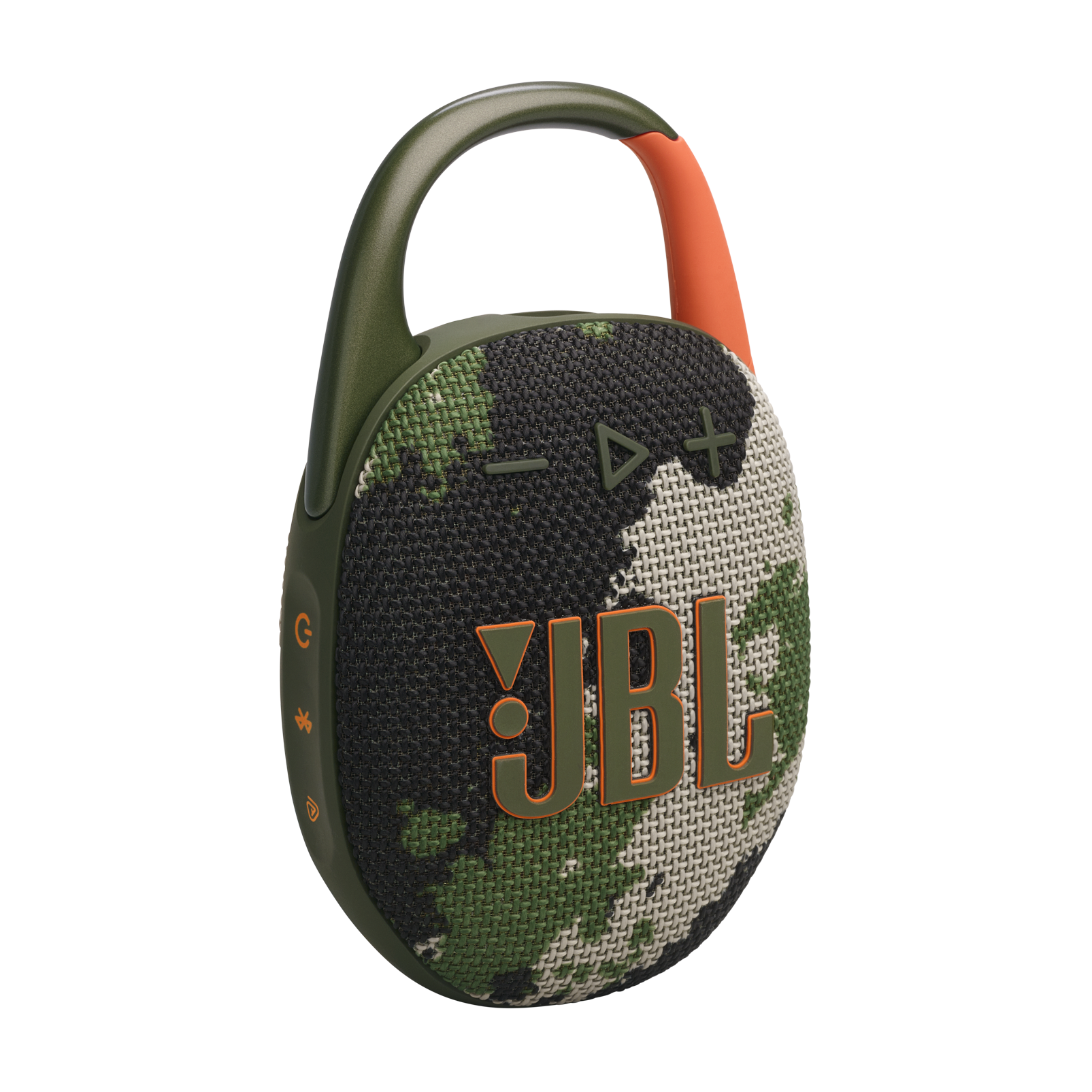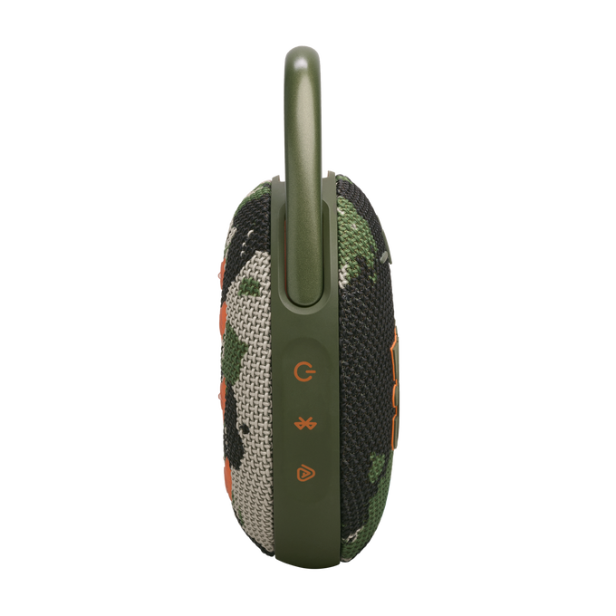 بلندگوی قابل حمل JBL Clip 5 یک اسپیکر کوچک و سبک با طراحی مقاوم و گیره کارابین داخلی است که میتوانید آن را به کوله، کمربند یا دوچرخه متصل کنید. بدنه با استاندارد IP67 ضدآب و ضدگرد و غبار ساخته شده، بنابراین برای سفر، کمپ و استفاده در فضای باز ایدهآل است.